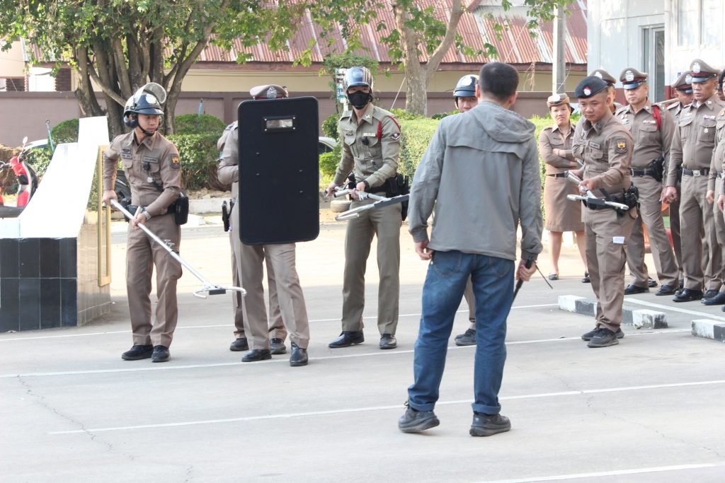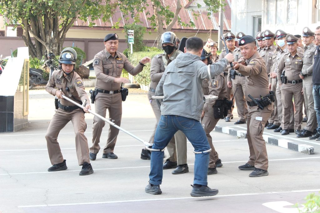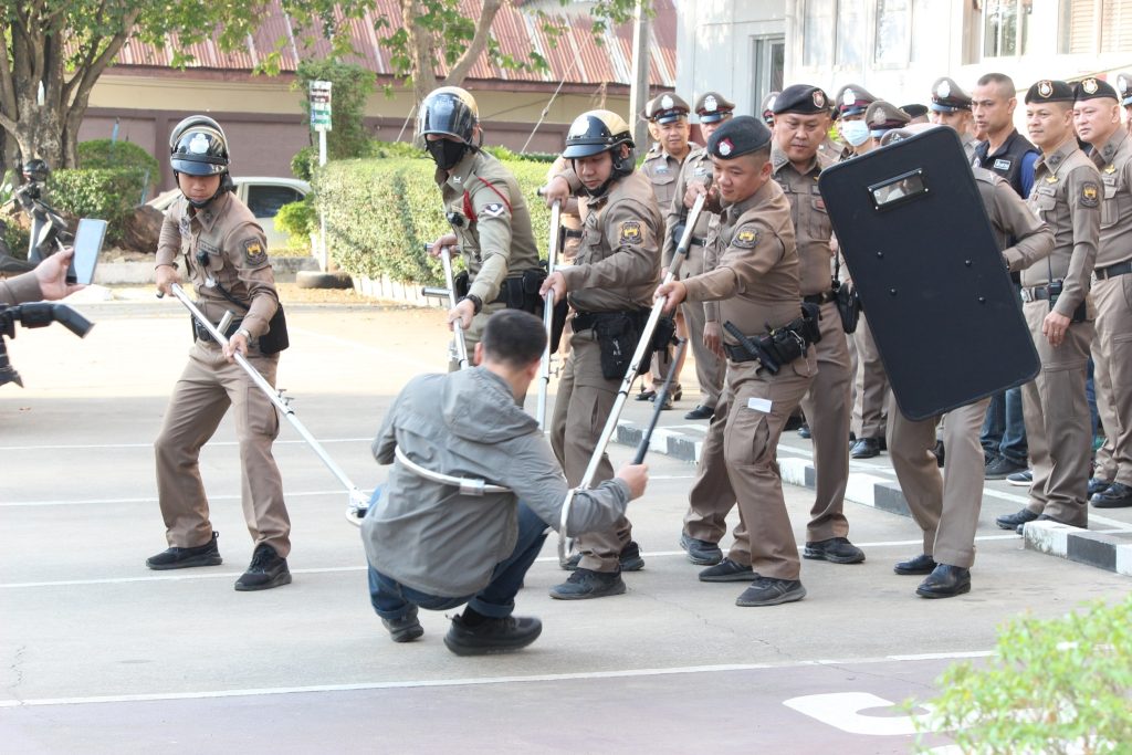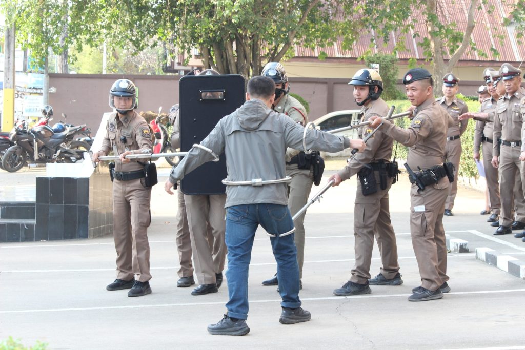 วันที่ 12 กุมภาพันธ์ 2568 พ.ต.อ.เจริญ แดงเรือง ผกก.สภ.ลับแล ได้ให้ชุดสายตรวจทำการสาธิตการฝึกการใช้ไม้ง่ามเป็นตัวอย่าง และนำมาถ่ายทอดการฝึก เพื่อป้องกันและระงับเหตุที่จะเกิดขึ้น และใช้งานให้ถูกต้อง และได้ให้ข้าราชการตำรวจผลัดเปลี่ยนการสาธิตการฝึก
