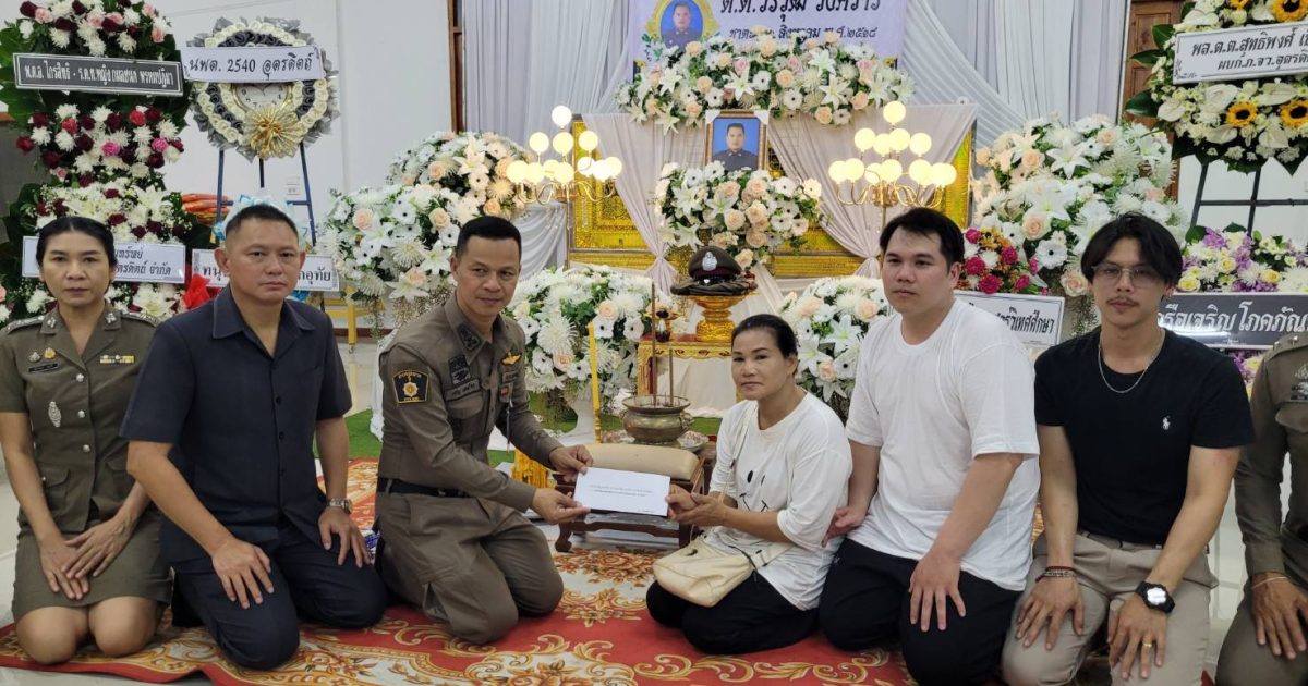 วันนี้ (6 มิ.ย.2568) เวลา 19.30 น. พ.ต.อ.เจริญ แดงเรือง ผกก.สภ.ลับแล เป็นประธานในพิธีฯ พร้อมด้วย รอง ผกก.(สอบสวน)ฯ, รอง ผกก.สส.ฯ, ผู้บังคับบัญชา, เพื่อนข้าราชการตำรวจ สภ.ลับแล และครอบครัว ร่วมเป็นเจ้าภาพสวดพระอภิธรรมศพ ด.ต.วรวุฒิ วงศ์วาร ผบ.หมู่(ป.) สภ.ลับแล ณ ศาลาธรรมสังเวช วัดนาโปร่ง ต.ท่าเสา อ.เมือง จว.อุตรดิตถ์ พ.ต.อ.เจริญ แดงเรือง ผกก.สภ.ลับแล ได้มอบเงินสวัสดิการช่วยเหลือข้าราชการตำรวจและครอบครัว สภ.ลับแล ให้แก่ ครอบครัววงศ์วาร