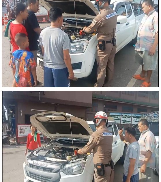 วันที่ 12 พฤศจิกายน 2566 เวลาประมาณ 10.30 – 11.00 น. บริเวณสี่แยกศรีพนมมาศ ร.ต.อ.วิชัย อินทร์มณี รอง สว.จร.สภ.ลับแล ด.ต.วัฒนา ทีทัดด้วง ผบ.หมู่ (ป.) ปฏิบัติหน้าที่งานจราจร สภ.ลับแล ได้ให้การช่วยเหลือ นายพลวัฒน์ จันทร์มี อายุ 27 ปี บ้านเลขที่ 53/2 หมู่ 6 ต.ไผ่ล้อม อ.ลับแล จ.อุตรดิตถ์ ขับรถยนต์กระบะ ทะเบียน บบ– 6341 อุตรดิตถ์ สตาร์ทไม่ติดเนื่องจากแบตเตอรี่หมด จึงได้นำรถยนต์ของทางราชการพวงสายแบตเพื่อชาร์ตแบตเตอร์รี่รถยนต์ของนายพลวัฒน์ฯ จนรถยนต์สามารถสตาร์ทติดและเดินทางต่อไปได้