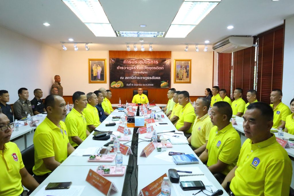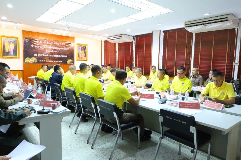 วันนี้ ( 6 มิ.ย.68 ) เวลา 09.30 น. พล.ต.ต.สุทธิพงศ์ เป๊กทอง ผบก.ภ.จว.อุตรดิตถ์ ประธาน พ.ต.อ.ศิริโชติ ธเนศราภา ,พ.ต.อ.สุทธิพงศ์ จันทร์พุฒ,พ ต.อ.ธีรพัฒน์ ธารีไทย , พ.ต.อ.ลิขิตพงศ์ ศรีนาราง รอง ผบก.ภ.จว.อุตรดิตถ์ , ผกก.ฝอ.ภ.จว.อุตรดิตถ์, ผกก.(สอบสวน) กลุ่มงานสอบสวน ภ.จว.อุตรดิตถ์, ผกก.สืบสวน ภ.จว.อุตรดิตถ์ , รอง ผกก.ฝอ.ฯ ,สว.ฝอ.ทุกแผนกงาน พร้อมด้วยหัวหน้าสถานีในสังกัด ภ.จว.อุตรดิตถ์ และเจ้าหน้าที่ที่เกี่ยวข้องร่วมประชุมบริหารหน่วยในสังกัด ภ.จว.อุตรดิตถ์ ประจำ เดือน พฤษภาคม 2568 ณ ห้องประชุม สภ.ลับแล อ.ลับแล จว.อุตรดิตถ์