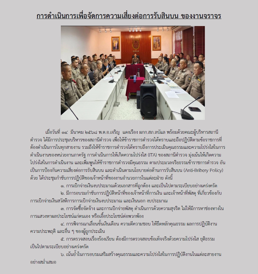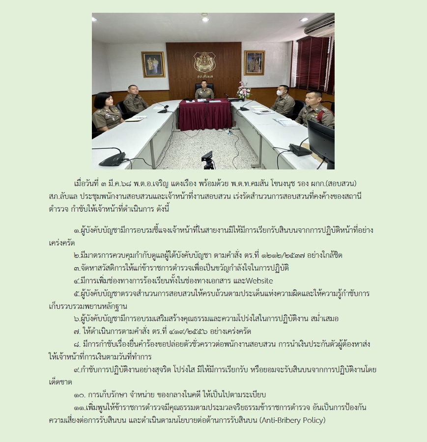 กิจกรรมการมีส่วนร่วมของหัวหน้าสถานีตำรวจในการต่อต้านการทุจริต/การรับสินบน