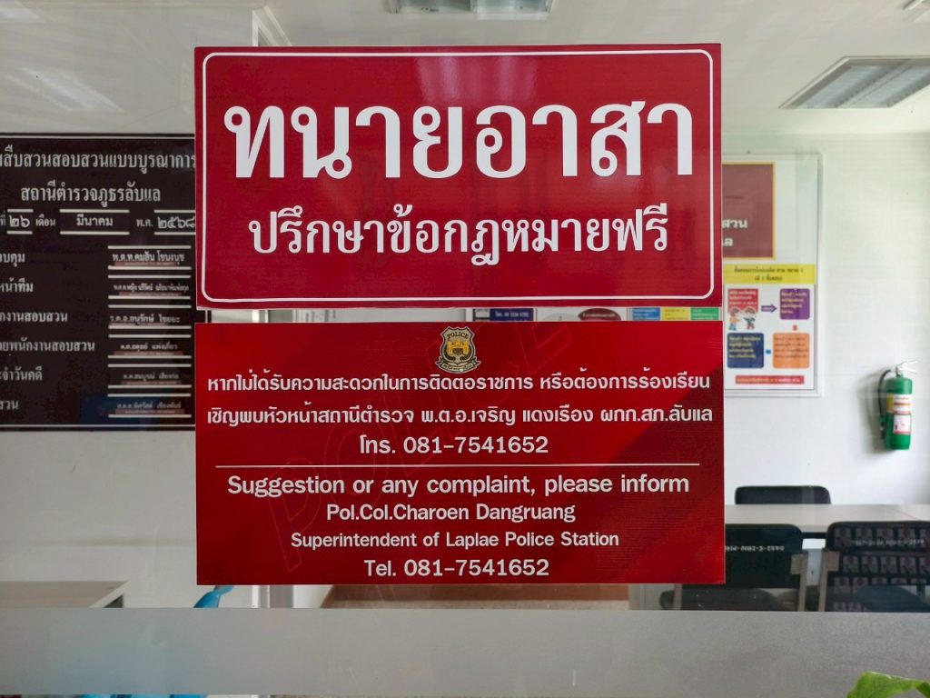 จุดบริการประชาสัมพันธ์/สอบถามความคืบหน้าของการ ดําเนินคดี และสามารถร้องทุกข์ต่อหัวหน้าสถานีตำรวจ เมื่อไม่ได้รับความเป็นธรรม
