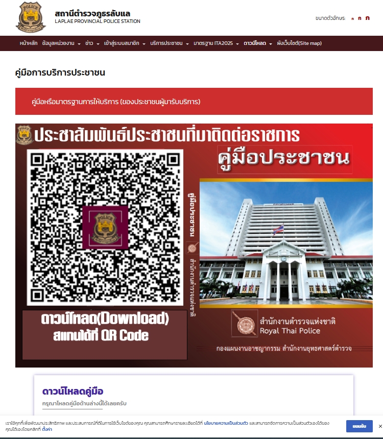 จัดให้มีป้ายประชาสัมพันธ์ให้ผู้มารับบริการ Download คู่มือการให้บริการ ติดที่จุดบริการ One Stop Service ให้ผู้รับบริการได้รับทราบ – นำคู่มือประชาสัมพันธ์ในเว็บไซต์ด์ของสถานีตำรวจ