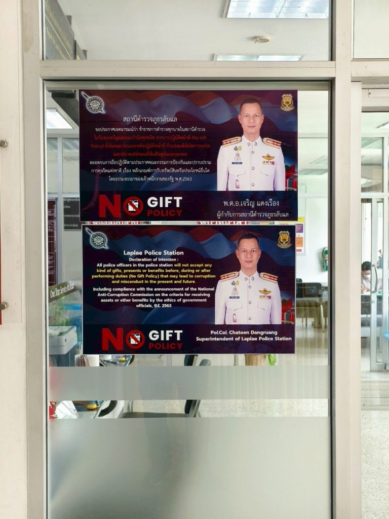 ติดตั้งป้าย No Gift Policy