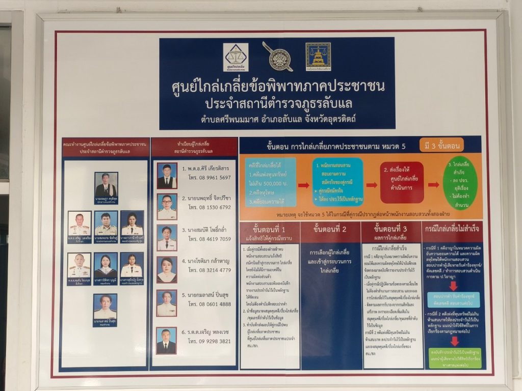 จัดตั้งศูนย์ไกลเกลี่ยข้อพิพาทภาคประชาชนประจำสถานีตำรวจไว้บริการ