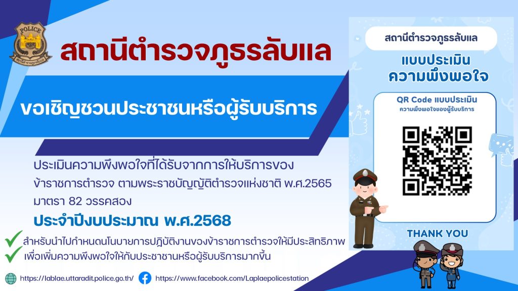 หัวหน้าสถานีตำรวจภูธรลับแล โทรสอบถามผู้ที่มารับบริการของสถานีตำรวจ เช่น ผู้เสียหายในด้านคดีต่างๆ และผู้ที่มารับบริการยังสถานีตำรวจ มีความได้รับความเป็นธรรมหรือไม่ การดำเนินการของเจ้าหน้าที่ตำรวจเป็นอย่างไร