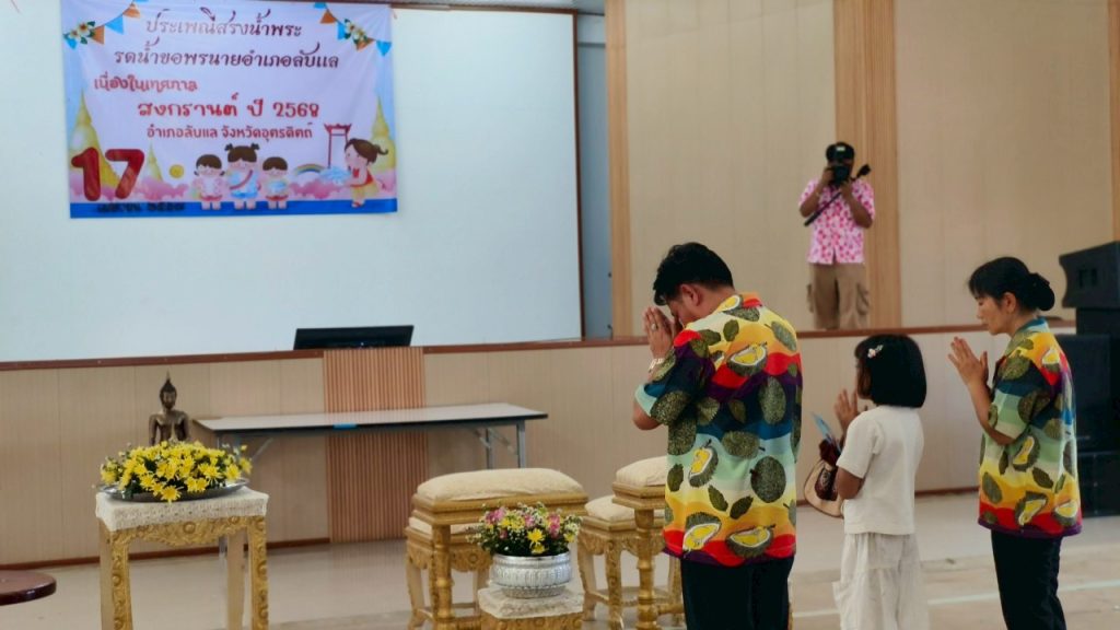 วันที่ 17 เมษายน 2568 เวลา 14.30 น. พ.ต.อ.เจริญ แดงเรือง ผกก.สภ.ลับแล มอบหมายให้ พ.ต.ท.ประยูร ปัญโญ รอง ผกก.ป.สภ.ลับแล และชุดชุมชนสัมพันธ์ กต.ตร.สถานีตำรวจ ร่วมงานประเพณีสรงน้ำพระ รดน้ำขอพรนายอำเภอลับแล เนื่องในเทศกาลสงกรานต์ ประจำปี 2568 ณ หอประชุมอำเภอ บ้านน้ำใส หมู่ที่ 1 ตำบลชัยจุมพล