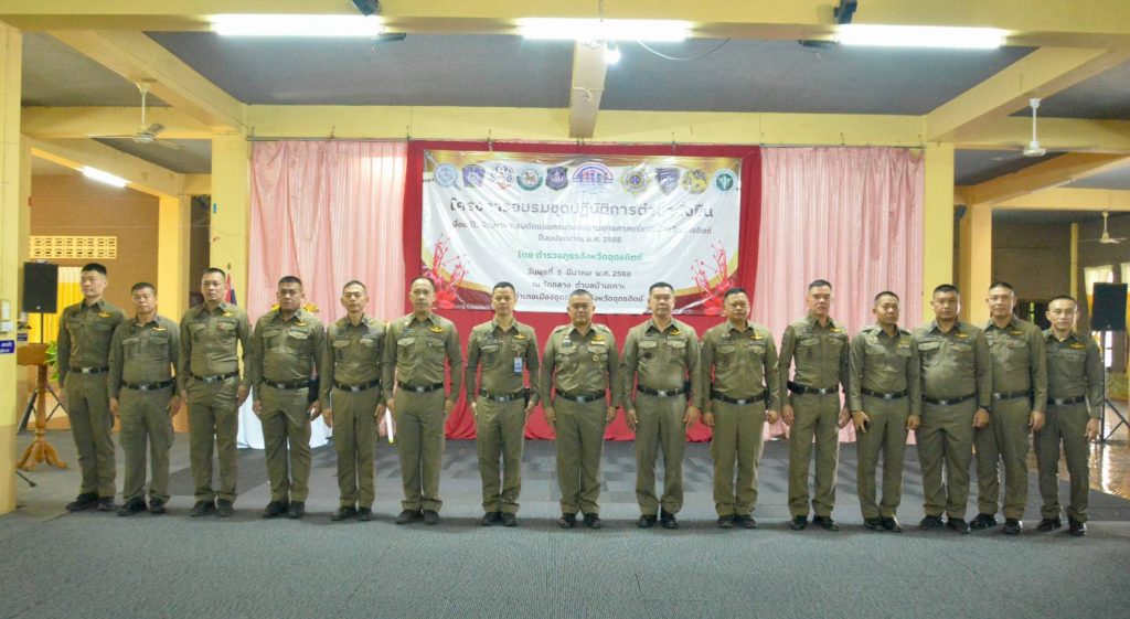 วันที่ 5 มี.ค.2568 พ.ต.อ.เจริญ แดงเรือง ผกก.สภ.ลับแล พร้อมชุดชุมชนและมวลชนสัมพันธ์ ชุดปราบปรามยาเสพติด เข้าร่วมอบรมชุดปฏิบัติการชุมชนยั่งยืนเพื่อแก้ไขปัญหายาเสพติด โดยมี พล.ต.ต.สุทธิพงศ์ เป๊กทอง ผบก.ภ.จว.อุตรดิตถ์ เป็นประธานเปิดการอบรมชุดปฏิบัติการตำบลยั่งยืนเพื่อแก้ไขปัญหายาเสพติดแบบครบวงจรตามยุทธศาสตร์ชาติ ของตำรวจภูธรจังหวัดอุตรดิตถ์ มี พ.ต.อ.สุเทพ ประภากรณ์ รอง ผบก.ภ.จว.อุตรดิตถ์ และหัวหน้าสถานีตำรวจในสังกัด จนท.ชุดชปฯ,ฝ่ายปกครอง,ฝ่ายสาธารณะสุข ผู้นำชุมชน และประชาชนที่เกี่ยวข้อง ณ วัดกลาง ต.ท่าอิฐ อ.เมือง จ.อุตรดิตถ์