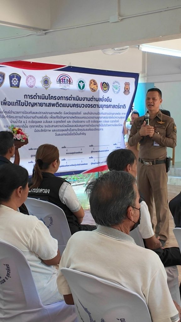 วันที่(11 มี.ค.2568 เวลา 13.30 น.) พ.ต.อ.เจริญ แดงเรือง ผกก.สภ.ลับแล พร้อมชุดปฏิบัติการตำบลยั่งยืน สภ.ลับแล และคณะกรรมการตรวจสอบและติดตามการบริหารงานตำรวจสถานีตำรวจภูธรลับแล ได้ร่วมกันเปิดโครงการตำบลยั่งยืน เพื่อแก้ไขปัญหายาเสพติด โดยได้กำหนดแผนการดำเนินงานหมู่บ้านเป้าหมายในการดำเนินการโครงการดำเนินงานตำบลยั่งยืนเพื่อแก้ไขปัญหายาเสพติดแบบครบวงจรตามยุทธศาสตร์ชาติ ปีงบประมาณ พ.ศ.2568 ณ โรงเรียนวัดน้ำใส ม.8 ต.ชัยจุมพล อ.ลับแล จ.อุตรดิตถ์ โดยมีนาย สุระวุธ จันทร์งาม นายอำเภอลับแล เป็นประธานพิธีเปิด