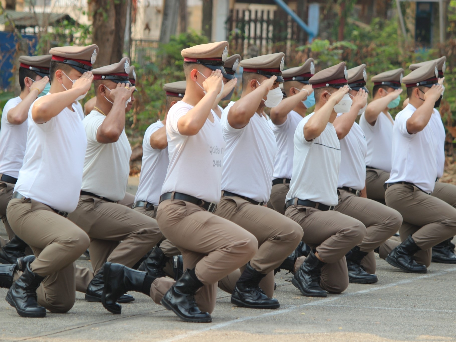 พ.ต.อ.เจริญ แดงเรือง ผกก.สภ.ลับแล ควบคุมการฝึกข้าราชการตำรวจ