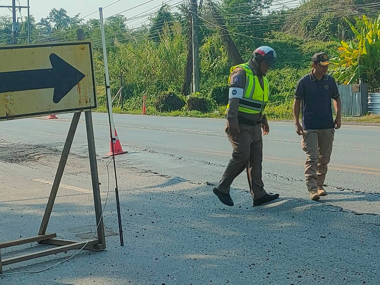 ชุดจราจรตรวจสอบผิวการจราจรเป็นหลุมร่องลึก บริเวณ หน้าคลังพัสดุไฟฟ้าลับแล ช่วงเนินหนึ่ง-เนินสอง ถนนอินใจมี หมายเลขทางหลวง 1041 พบถนนเป็นหลุมร่องลึก 1 ช่องจราจร