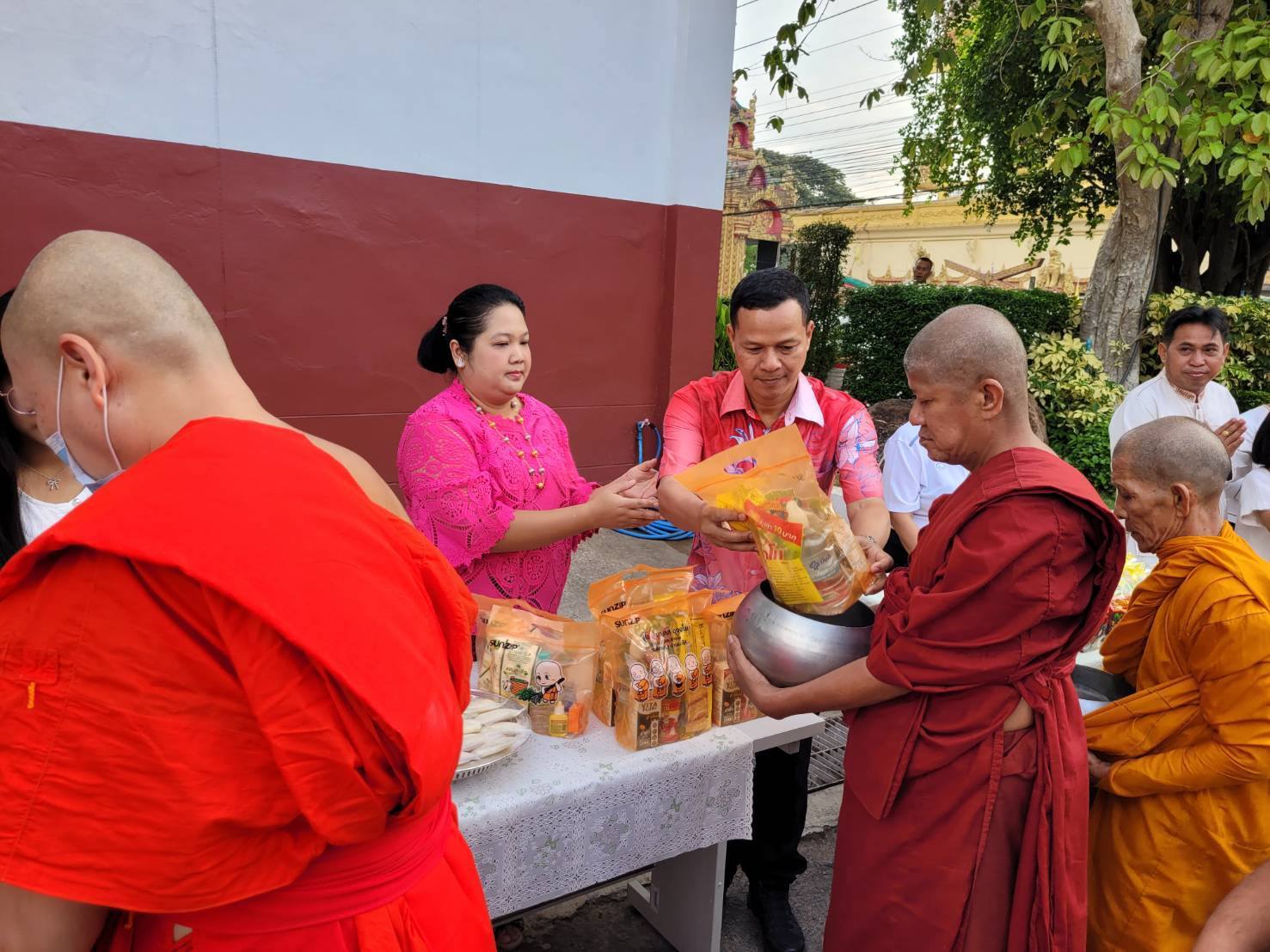 ร่วมทำบุญตักบาตรข้าวสารอาหารแห้งแด่พระภิกษุสงฆ์และสามเณร จำนวน 109 รูป และร่วมชมขบวนประเพณีสืบสานวัฒนธรรมฯ,